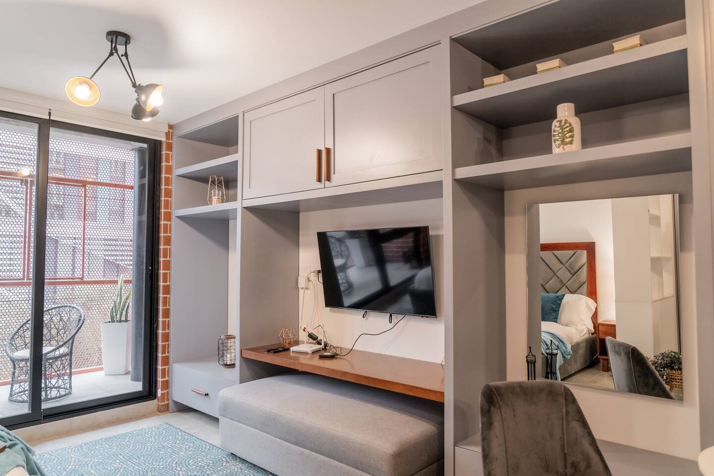 ¿Qué podría ser mejor que hospedarte en una de las mejores zonas de la ciudad? Este apartamento de ensueño está diseñado para crear un verdadero refugio en el corazón de la ciudad, cada rincón tiene una historia que contar y estás a solo un clic de descubrir lo que hemos preparado para ti. Este apartamento tipo estudio cuenta con baño completo, cocina totalmente equipada, una sala cómoda y una habitación. En la habitación encontrarás una cama queen size que acomoda cómodamente a 2 personas. Estarás a un paso de "cuatro grados", donde encontrarás muchos de los lugares favoritos para los amantes de la gastronomía. Si no quieres usar carro, encontrarás una estación de metrobus justo frente al edificio, que te puede llevar a zona 10, zona 9, zona 13 y zona 1. El aeropuerto está a 15 minutos.
