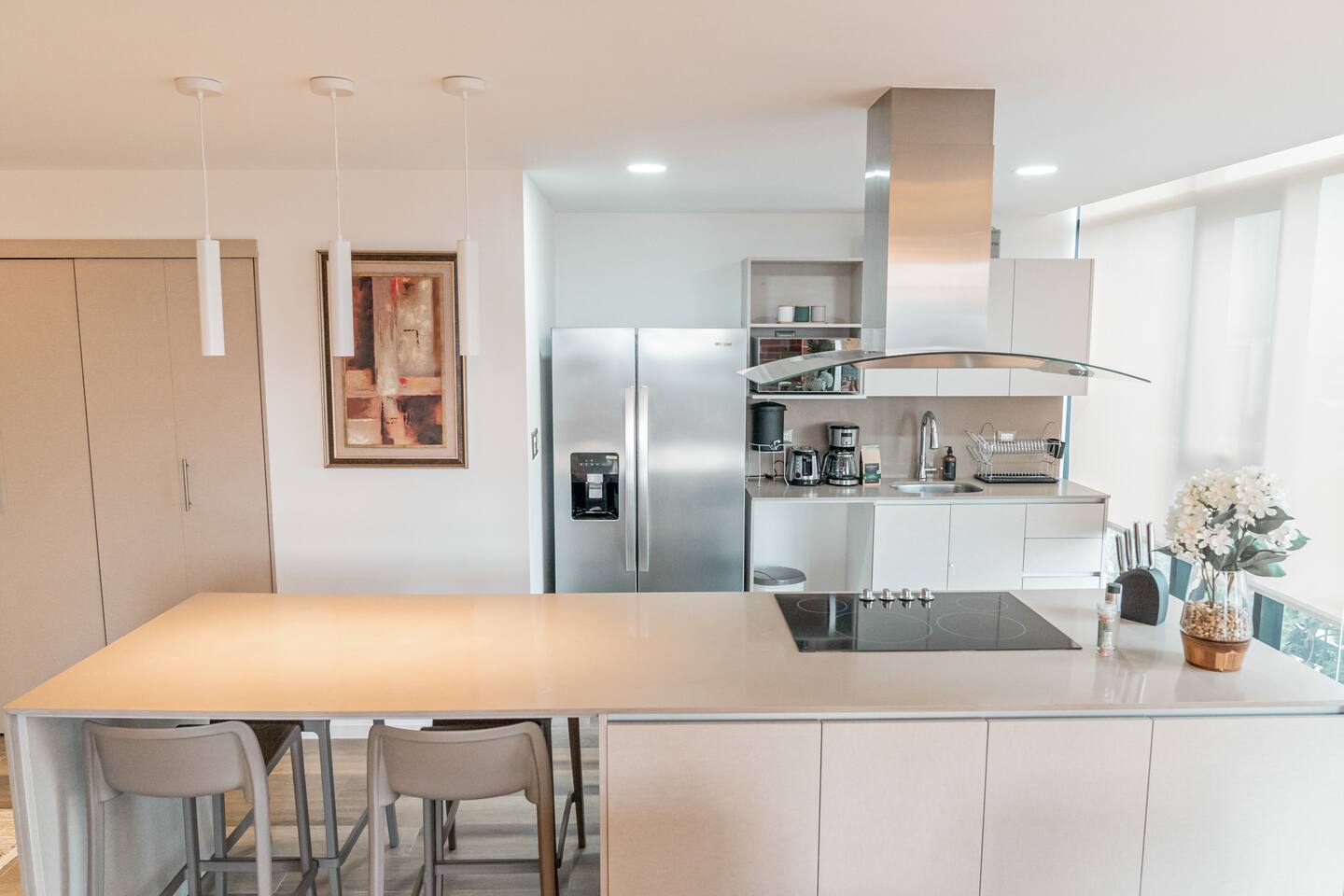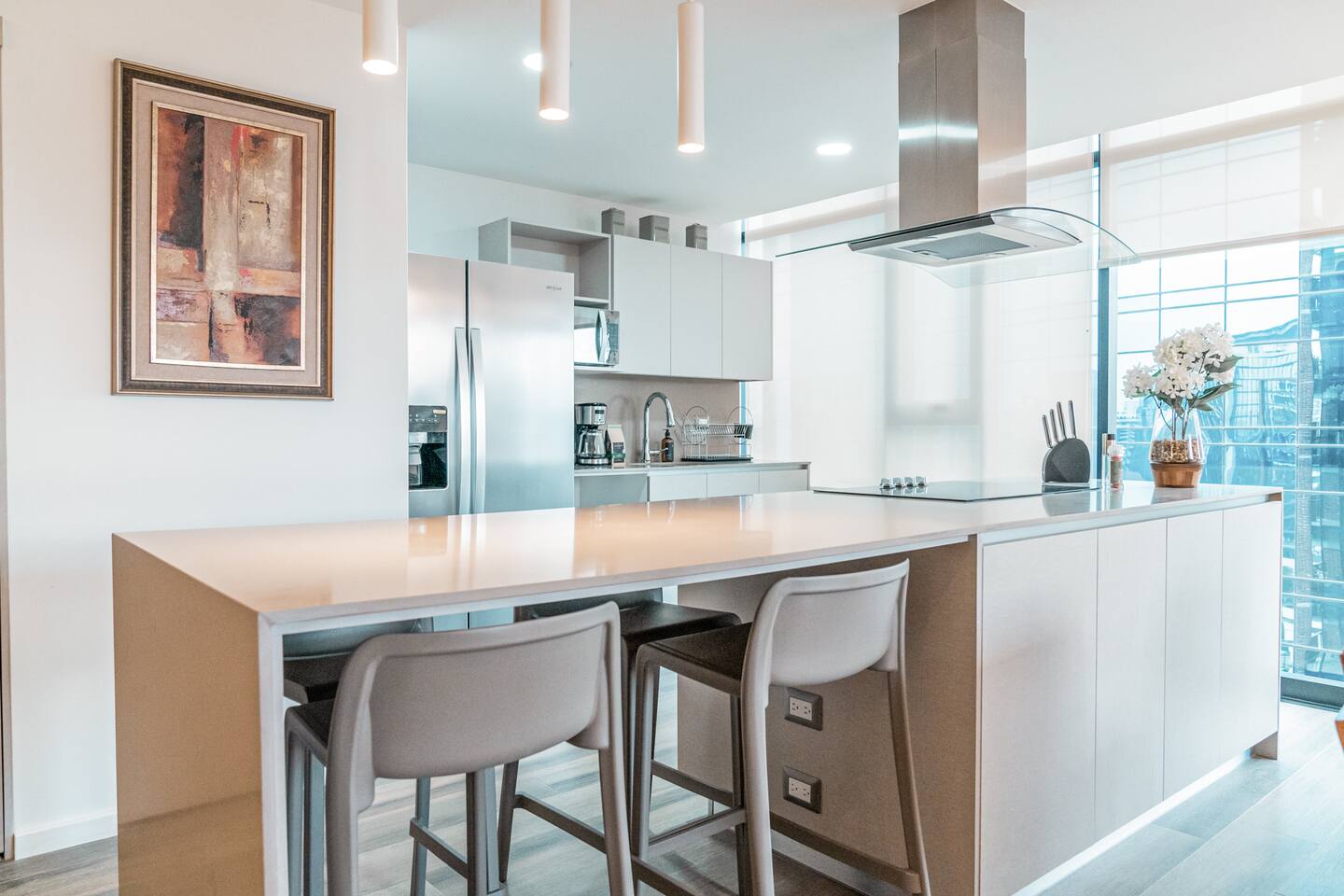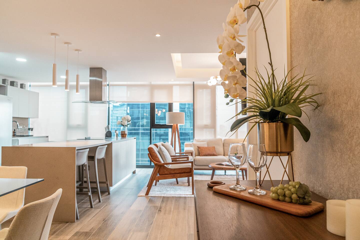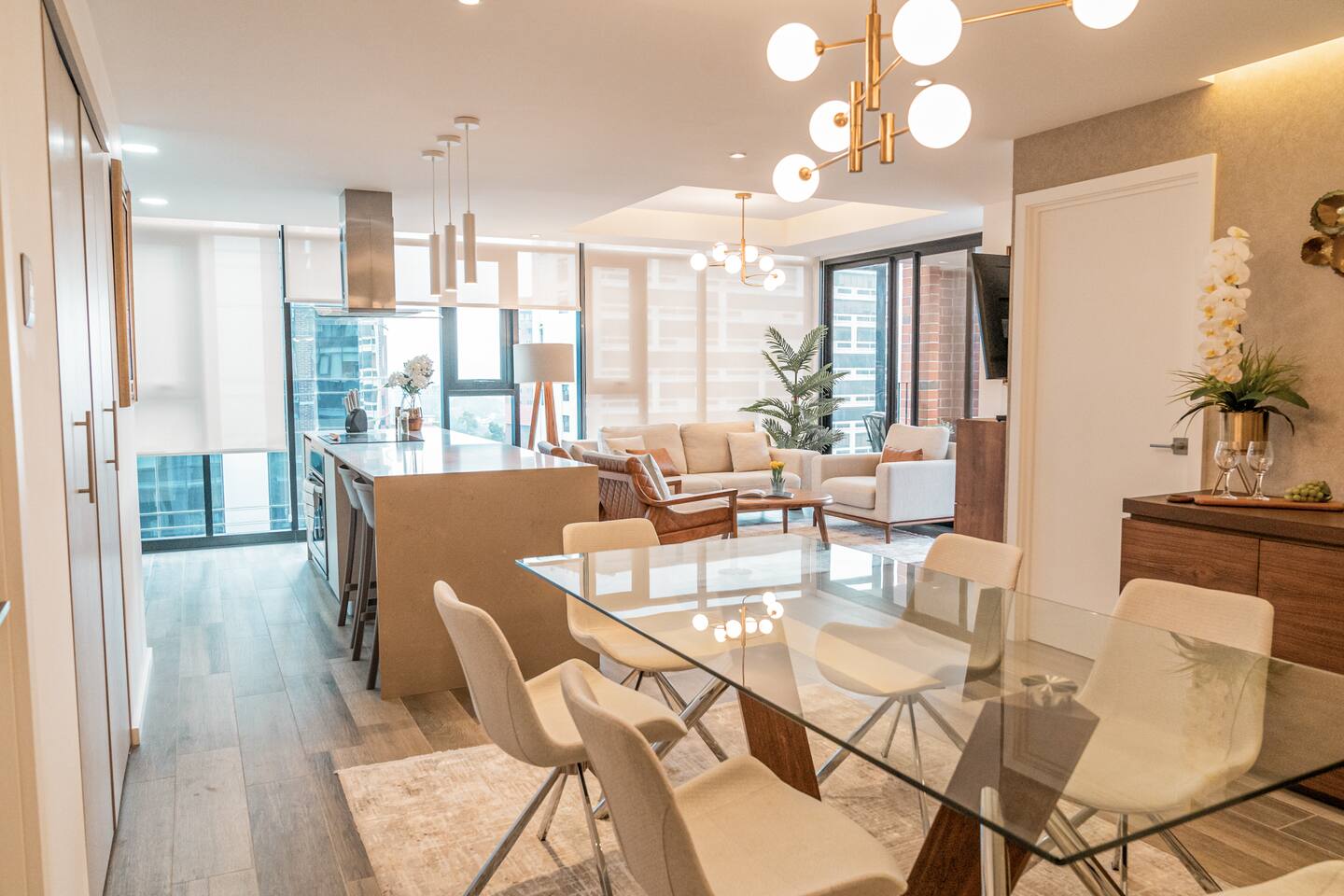 ¿Qué puede ser mejor que disfrutar la ciudad sin tener que usar tu auto? Este apartamento de ensueño está diseñado para crear un verdadero refugio en el corazón de la ciudad, cada rincón tiene una historia que contar, estás a solo un clic de descubrir lo que hemos preparado para ti. El apartamento incluye 3 habitaciones con 2 baños completos, una cocina totalmente equipada, una sala cómoda y un baño de visitas. Encontrarás una cama queen en 2 de las habitaciones y una cama individual en la otra habitación, acomodando cómodamente a 5 personas. Estarás a un paso de los principales centros comerciales de la ciudad (a 1/2 cuadra). También cerca se encuentran algunos de los restaurantes más populares y varias tiendas. El aeropuerto está a 15 minutos.