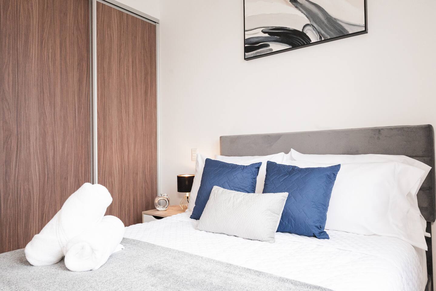 What could be better than enjoying the city without having to use your car? This dream apartment is designed to create a true refuge in the heart of the city, every corner has a story to tell, you are just 1 click away from discovering what we have prepared for you. The apartment includes 2 bedrooms with 2 full bathrooms, a fully equipped kitchen, a comfortable living room. You will find a queen-size bed in both rooms that comfortably accommodates 4 people The building’s pool is heated, perfect for you to enjoy a relaxing bath at the ideal temperature at any time during your stay. You will be 1 step away from the main shopping centers of the city. Also nearby are some of the most popular restaurants and several shops. The airport is 15 minutes away.
