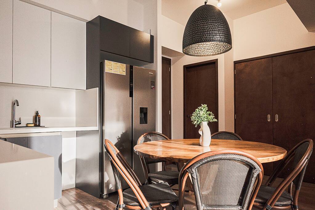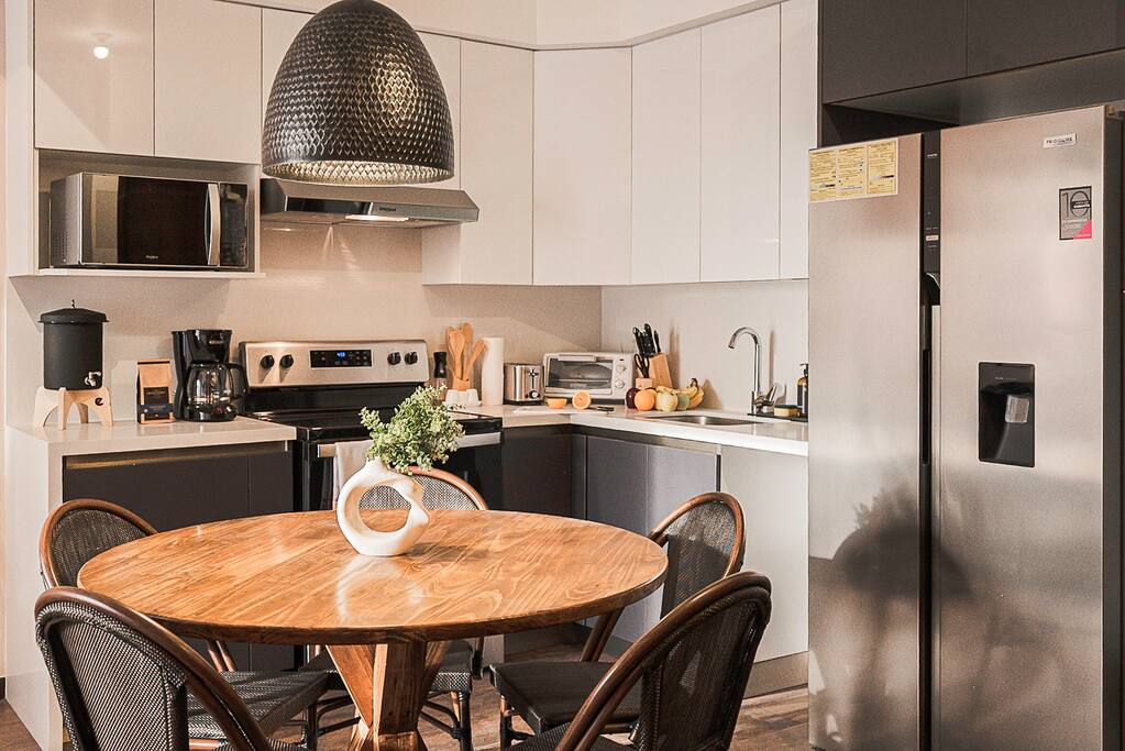 ¿Qué puede ser mejor que disfrutar de la ciudad sin tener que usar tu auto? Este apartamento de ensueño está diseñado para crear un verdadero refugio en el corazón de la ciudad, cada rincón tiene una historia que contar, estás a solo un clic de descubrir lo que hemos preparado para ti. El apartamento incluye 3 habitaciones con 2 baños completos, una cocina totalmente equipada, una sala cómoda y un baño de visitas. Encontrarás una cama queen size en 2 de las habitaciones y una litera en la otra habitación que acomoda cómodamente a 6 personas. La piscina del edificio es climatizada, perfecta para que disfrutes de un baño relajante a la temperatura ideal en cualquier momento durante tu estadía. Estarás a un paso de los principales centros comerciales de la ciudad. También cerca se encuentran algunos de los restaurantes más populares y varias tiendas. El aeropuerto está a 15 minutos.